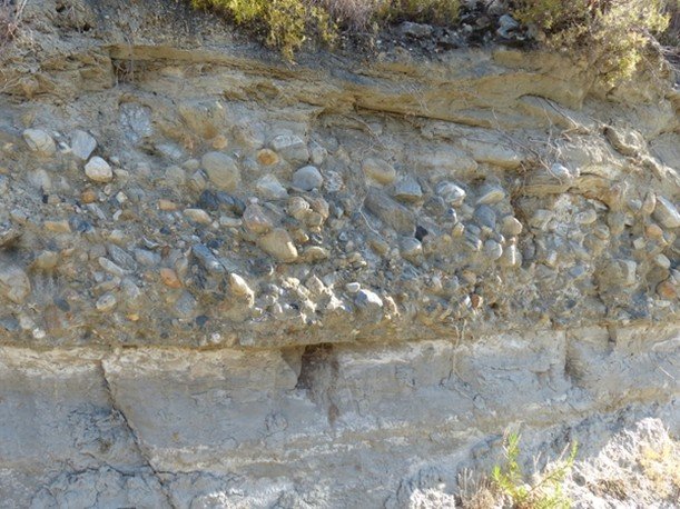 - Conglomerados. Son rocas detríticas formadas básicamente por fragmentos o cantos de más de 2 mm de diámetro y, a veces, hasta de orden métrico, generalmente incluidos en una matriz compuesta por arena, limo y arcilla. Pueden estar más o menos cementados.