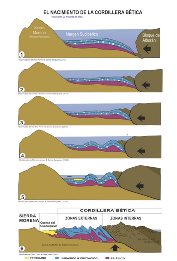 En este eterno baile de placas continentales, hace ya unos 30 millones de años, un pequeño fragmento de corteza terrestre se desplazó desde la zona de Alborán hacia el oeste hasta colisionar finalmente con las tierras ibéricas y africanas. Así nacería otra parte de Andalucía, la Cordillera Bética.