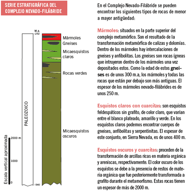 Las rocas más frecuentes en el Complejo Nevado-Filábride son:
