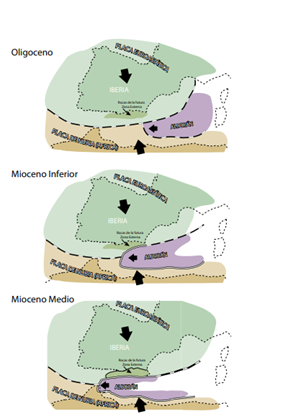 La Cordillera Bética es el resultado de la colisión entre tres placas tectónicas: la placa Ibérica, la placa Africana y la pequeña placa de Alborán. Es posible reconstruir la posición aproximada de la placa de Alborán a lo largo del tiempo geológico. Hace unos 30 millones de años, la placa de Alborán se encontraba centenares de kilómetros al este de su posición actual. Esta placa se desplazó hacia el oeste deformando progresivamente los sedimentos que encontraba a su paso y colisionando finalmente con las placas mayores.