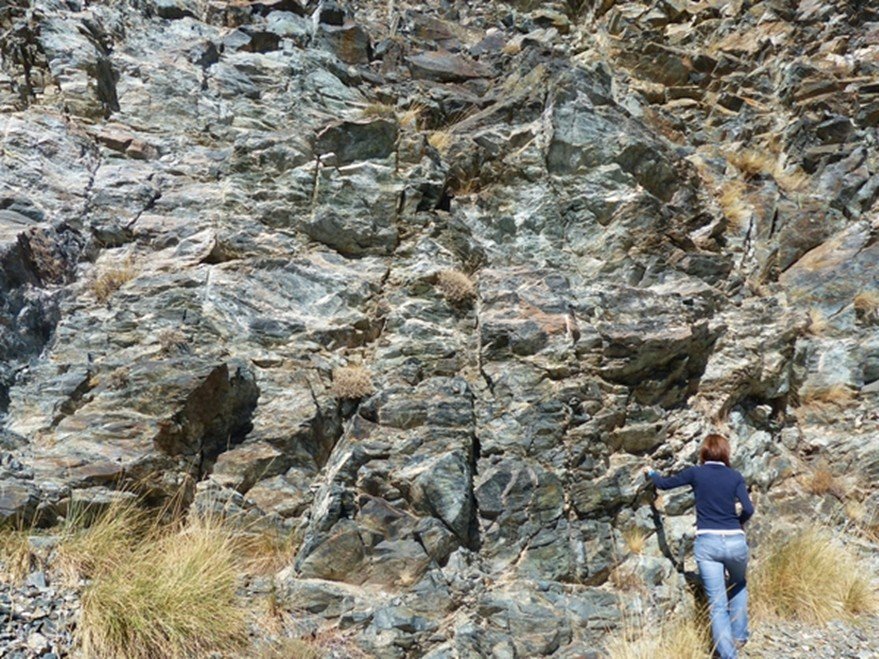 - Rocas verdes. Bajo el término rocas verdes se agrupa un conjunto de rocas metamórficas de esa tonalidad que derivan de rocas ígneas básicas (ultramáficas), extraordinariamente pobres en sílice, como peridotitas, basaltos y gabros. A pesar de ofrecer una gran variedad litológica, pues hay serpentinitas, anfibolitas, metabasitas, eclogitas, etc., sus características químicas son parecidas: muy poca presencia de sílice y abundantes minerales máficos, anfíboles, piroxenos, etc. Afloran en forma de lentejones de tamaño métrico a kilométrico, intercalados en la potente serie metamórfica del Complejo Nevado-Filábride.