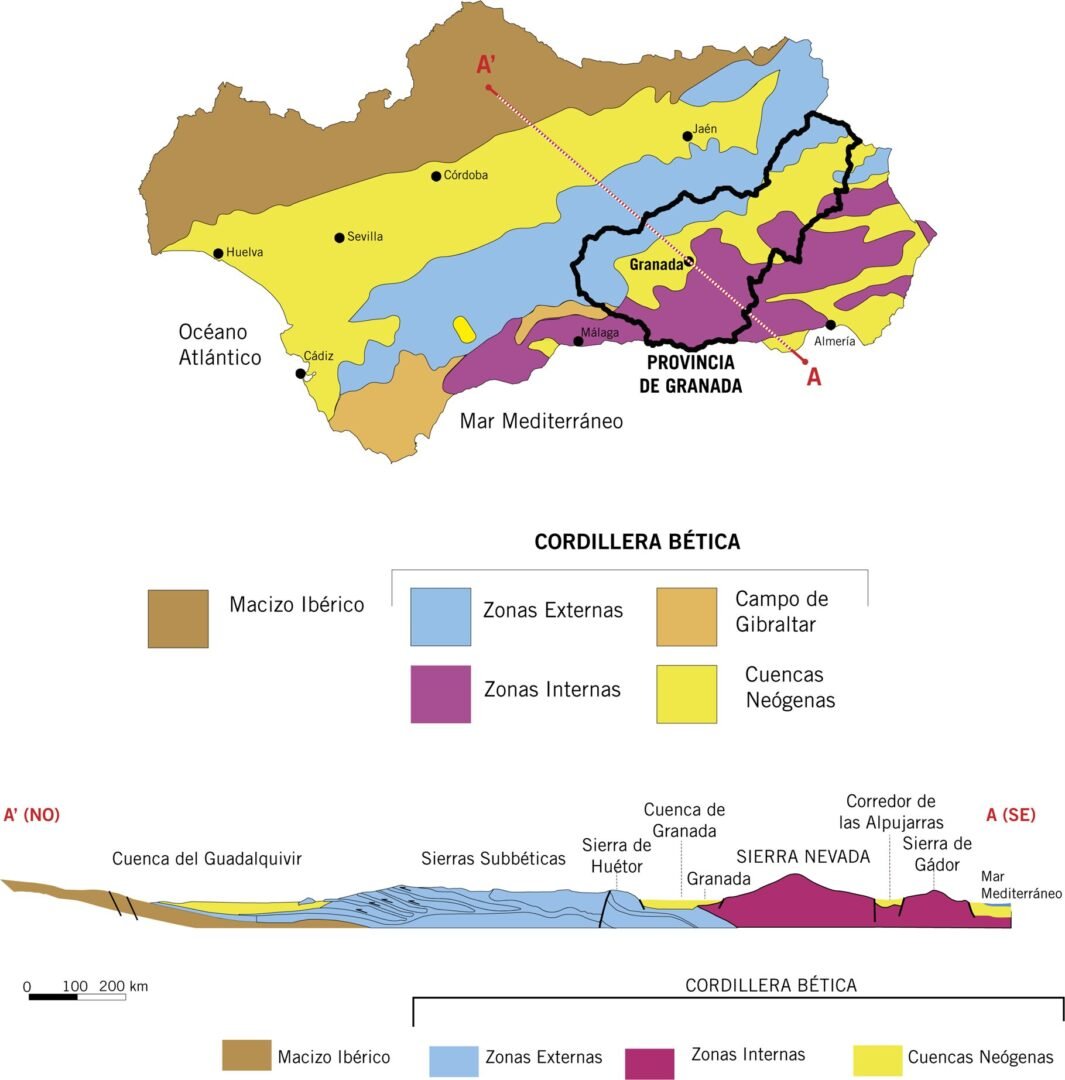 De ellos, en la provincia de Granada están representadas la Cordillera Bética y las Depresiones Neógenas, cuya evolución está íntimamente ligada a la de la Cordillera Bética.